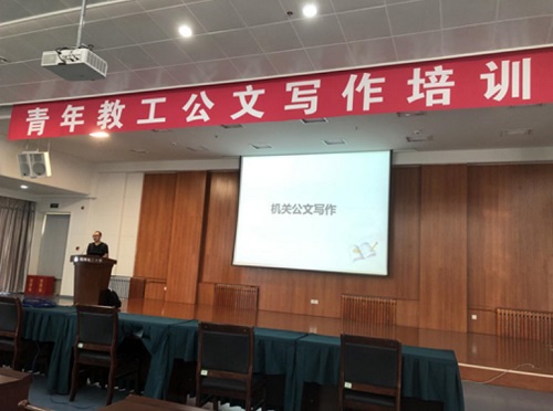 图为孔凡非老师为青年教工进行专题培训