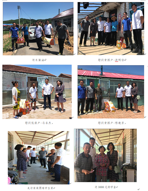 为认真贯彻落实习近平总书记关于扶贫工作重要论述,强化指导帮扶,推进脱贫攻坚和乡村振兴有效衔接, 6月19日上午,体育部党总支书记王宏、图书馆直属党支部书记赵霜霜到新宾满族自治县新宾镇下坎村开展扶贫调研,慰问扶贫一线的第四批驻村工作队张富利、申延明、包铁柱三名同志,分别就驻村工作情况、下坎村党建发展、扶贫成效、壮大村集体经济等方面进行座谈交流。会上体育部党总支书记王宏谈到,学校成立了扶贫超市,由驻村工作队和第一书记代言,帮助推销农村特色农副产品。希望在2020年脱贫攻坚决战决胜之年,驻村工作队的同志要及时发现和解决问题,加快推动扶贫工作落实,带着情感、带着责任努力奋斗,带动建档立卡贫困户和广大村民一起努力,坚决打赢脱贫攻坚战。