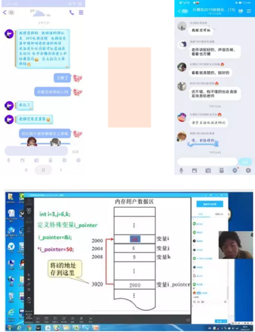 经过精心部署,细心谋划,2月24日,迎来了新学期的第一天,各位老师分别采用了腾讯课堂、腾讯会议、腾讯QQ群课堂等在线授课方式进行了第一次的线上直播授课。全体老师第一次课全部采用了直播,与学生沟通交流。与传统的课堂比较,无论老师还是学生都是第一次尝试这种大规模的线上授课,学生与老师普遍感到很新奇。学生对于老师精心的教学设计、清晰的PPT、流利的表达均表示较为满意,甚至于对老师第一次直播时的小紧张也感到很可爱,平时线下教学时不敢当面提问的问题也敢于表达。学生对于老师为了这次线上授课所做的尽心尽力的努力也都看在了眼里,对老师们辛苦的付出表示感谢。老师们也通过此次线上授课的方式,对于课程的信息化建设、翻转课堂等有了进一步深刻的认识,明晰了教学改革的方向。