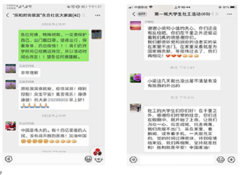 隔离病毒,并不隔离爱!在这个关键时刻,化大学子勇于合力致远,社会工作专业师生勇担职责,发挥社会工作专业知识,开展线上专业志愿服务工作,积极参与到学院防疫工作当中,为战胜疫情贡献了自己的力量。