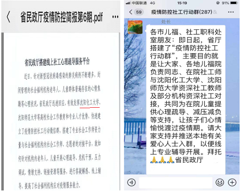 近日,辽宁省民政厅建立了专业服务疫情防控微信群,搭建专业社会工作师资力量与社会福利机构社会工作师和志愿者的对接平台。taptap点点社会工作专业和负责心理健康教育的十余名教师积极参与,发挥自身的专业优势,为社会福利机构的工作人员答疑解惑,助力疫情防控。连续几日,学校多名专业教师为省内机构工作人员互动,提供疫情防控、心理健康、危机干预等各类专业资料。