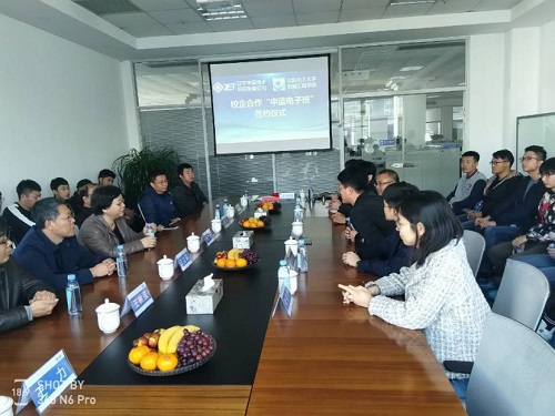 10日31日,机械工程学院院长付广艳、党总支书记刘强、副院长王立强、党总支副书记刘铸,机电教研室主任王树强及冯霏、王力老师,2017级辅导员李楷老师,机电1701班全体学生一行赴辽宁中蓝电子科技有限公司参观考察并签订校企“企业冠名班”联合培养合作协议。