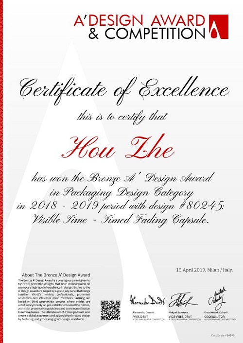 4月15日,意大利A'Design Award设计大赛赛果出炉,工业与艺术设计系侯哲老师的作品《可见时间定时褪色胶囊》获得了大赛铜奖。