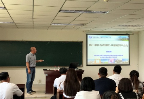 白晨曦研究员通过介绍合成橡胶的发展历程和战略地位,结合中国科学院长春应化所在设计合成高性能橡胶方向所取得国际领先的科研成果,着重讲解了稀土催化合成高性能橡胶从基础研究、理论体系建立到产业化应用中所作的科研工作和创新成果,并提出了高性能仿生橡胶的研究方向。他鼓励研究生要有吃苦耐劳的拼搏精神、勇于探索的科研精神和积极奋进的创新精神。随后,参加讲座的教师和同学们就高性能合成橡胶相关领域和方向与白晨曦研究员进行了热烈的交流和讨论。