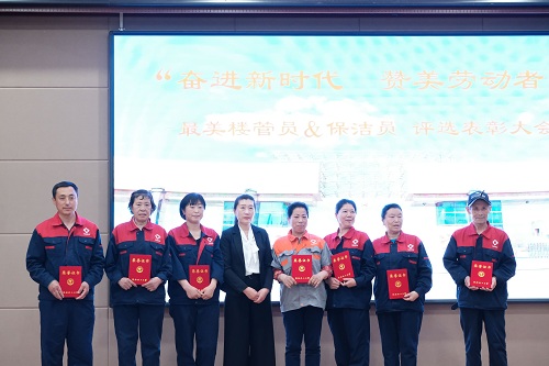 大会开始,进行了获奖楼管员、保洁员的先进事迹展播。楼管妈妈们每一句朴素的话语,每一声温柔的应答都令人感动,她们是校园安全的捍卫者和守护人。保洁阿姨们以“宁愿一人脏,换来万家净”的时传祥精神,起早贪黑,披星戴月,用忘我的劳动、无私的奉献,默默地为全校师生付出。后勤服务工作是‘没有讲台的课堂’,后勤员工是‘不上讲台的教师’。