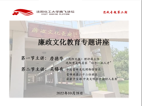 10月28日下午,taptap点点腾飞讲坛2022年度思政专题第二期开讲。讲坛以腾讯会议的形式举行,邀请了沈阳日报理论评论部主任、主任编辑、沈阳市文化名家暨“四个一批”人才詹德华以及中国雷锋文化博物馆馆长、雷锋班第二十二任班长、荣获中宣部“中国好人”称号的吴锡有两位专家作为主讲人。马克思主义学院教师和100余名学生参加了讲坛。