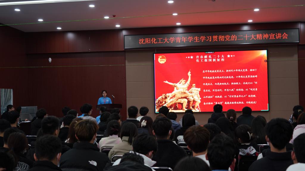为全面学习宣传贯彻党的二十大精神,在全校迅速兴起学习热潮,引导全校学生感党恩、听党话、跟党走,用青年声音、青年视角讲述新时代故事,生动、准确地做好党的二十大精神的青年化阐释,11月9日,校团委组织taptap“化工报国”大学生理论宣讲团开展了以“青春献礼二十大 化工报国新征程”为主题的大学生理论宣讲活动。