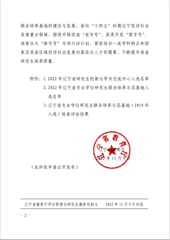 近日,辽宁省教育厅公布了《2022年辽宁省研究生创新与学术交流中心、专业学位研究生联合培养示范基地及部分示范基地检查评估结果的通知》(辽教通〔2022〕237号),taptap申报的“沈阳感光化工研究院有限公司研究生联合培养基地”、“沈阳顺风实业集团有限公司研究生联合培养基地”、“沈阳石蜡化工有限公司研究生联合培养基地”、“盘锦辽河富腾热电有限公司研究生联合培养基地”、“辽宁省国际工程咨询中心有限公司研究生联合培养基地”和“拜澳泰克(沈阳)生物医学集团有限公司研究生联合培养基地”入选辽宁省研究生联合培养示范基地,同时,taptap2019年入选的3个辽宁省专业学位研究生联合培养示范基地顺利通过验收评估。