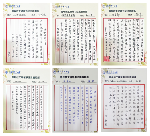 第二届“腾飞杯”青年教工技能大赛“抒写情怀,展现风貌”青年教工硬笔书法比赛已于近日在机关楼学术报告厅成功举办。此次比赛由校工会主办,制药与生物工程学院工会承办。全校共四十余名青年教师参加本次比赛。
