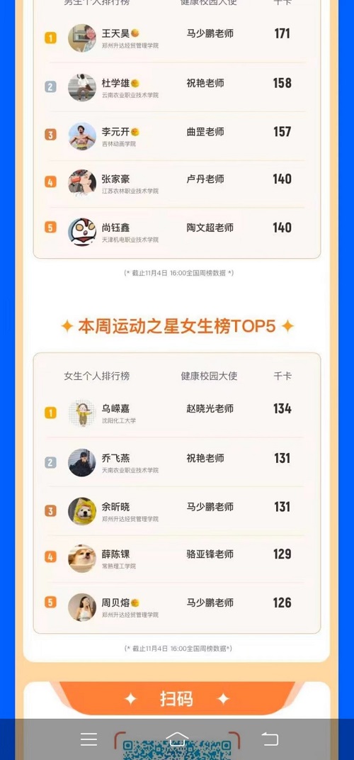 在第一届大赛中taptap获得学校团体赛一等奖和个人赛男子赛区第一名的优异成绩。同时taptap6名老师获优秀指导教师证书和优秀健康大使奖。在本次第二届大赛,继续由赵晓光老师担任taptap健康大使,负责taptap赛事的组织与策划。在上半赛季的比赛中taptap4个年级共计14454人报名参加了本次大赛,体育部全体老师都参加了赛事指导工作。本次比赛要求学生每周至少5天利用乐动力APP参加体育锻炼,经过全体师生的共同努力,学校总体排名在放假前一直在前十名的光荣榜上。保持身体健康和良好的锻炼习惯不是一朝一夕能够完成的。希望taptap学生通过此次比赛,继续保持良好的运动习惯,以乌嵘嘉同学为榜样,在完成好文化课学习的同时,不断加强身体锻炼,锤炼意志、塑造精彩人生。