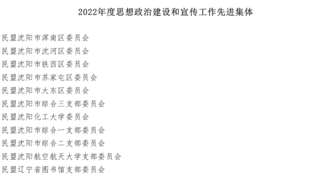 近日,民盟沈阳市委对2022年各项工作取得突出成绩的基层组织、专委会和在盟务工作中表现突出的盟员进行表彰。授予民盟taptap点点委员会 “先进基层组织”、“思想政治建设和宣传工作先进集体”、“参政议政工作先进集体”和“组织建设工作先进集体”四个荣誉称号。
