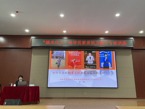 5月24日上午,“烛光化大”辅导员素质能力提升工程专家讲座在青年之家举行。教育部高校思想政治工作队伍培训研修中心(郑州大学)办公室副主任,思政教育专业博士聂娜应邀作主题报告。各学院(部)分党委(总支)副书记、全体辅导员参加报告会。报告会由党委学生工作部副部长王瑛玉主持。