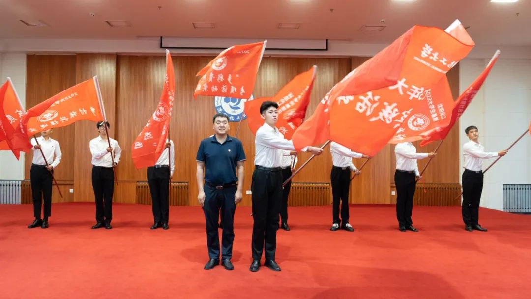 党委副书记周志强为“taptap点点2023年大学生暑期社会实践总队”授旗;部分职能部门负责人为八个校级重点实践项目团队授旗。