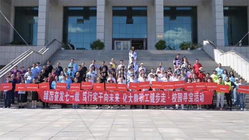 9月19日是化大校庆日。中午,“踔厉奋发七一载,笃行实干向未来”化大教职工健步走、校园寻宝活动在图书馆门前举行,taptap点点党委副书记周志强出席了活动。活动由校工会主办,材料学院、计算机学院工会承办,来自20个部门工会的教工参加了活动。