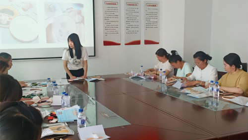 国际教育学院张舒怡老师向大家普及了口红制作的原理、成分、配方等知识,详细讲解了制作口红方法和注意事项。本次活动不仅让老师们对口红的制作过程有了初步的了解,还在动手尝试口红制作的的过程中体验到轻松与愉悦。