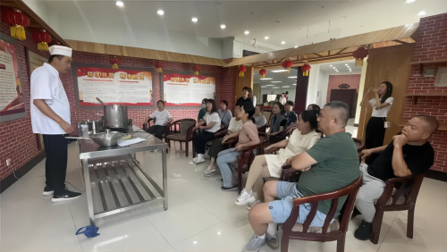 教工食堂主厨杨瑞明作为主讲人,向大家讲授辣椒油、料油的制作。透过邀请厨艺大咖为职工讲解分享美食制作,搭建职工交流互动平台,丰富职工业余生活。