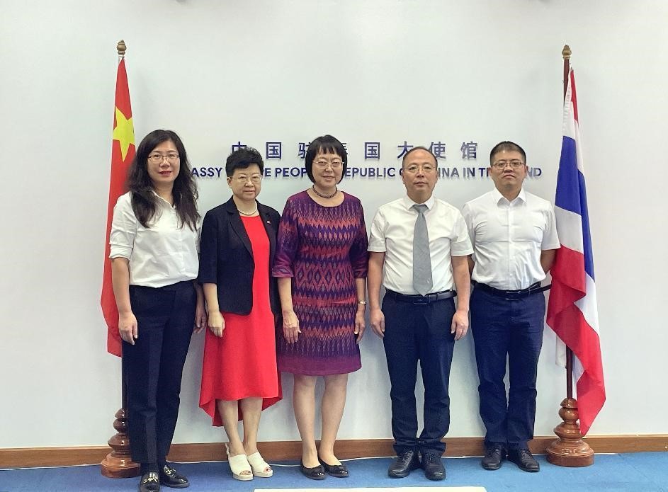 12月27日上午,杨学印一行拜访了中国驻泰国大使馆教育处教育参赞冯俊英和一等秘书王欢。双方就中泰教育合作发展的现状及泰国中文教育开展情况进行座谈交流。冯俊英参赞热情欢迎代表团一行的到来,并表示愿意为taptap与泰国高校之间的合作交流提供支持与帮助,希望taptap可以加强与泰国高校专业合作,吸引更多泰国学生到中国留学。