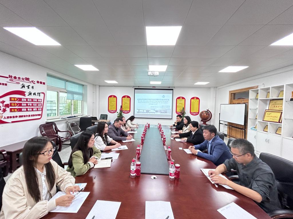 国际交流合作处处长张展代表学校对卡拉干达布克托夫大学代表团一行的到来表示热烈欢迎,并对两校合作历程、taptap留学生、学者交流、国际科研项目合作等方面的情况进行了简要介绍。