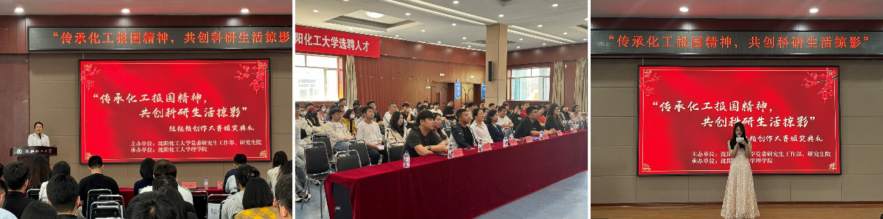 本次短视频创作大赛共收到各学院参赛作品二十余份,内容丰富多样,涵盖科研实验、学术探讨、学习生活等多个方面。经过激烈角逐和严格评审,最终评选出一等奖两组、二等奖三组、三等奖五组,优秀奖五组。大会上,党委研究生工作部部长杨海霞致辞发言,对本届大赛获奖研究生队伍表示热烈祝贺,对承办单位理学院在大赛组织和执行方面所做工作表示充分的肯定和感谢。鼓励研究生学子继续发扬化工报国精神,不断提高自身科研能力与创新意识,充分利用短视频这一新兴媒介,记录和展示科研生活,传递正能量。