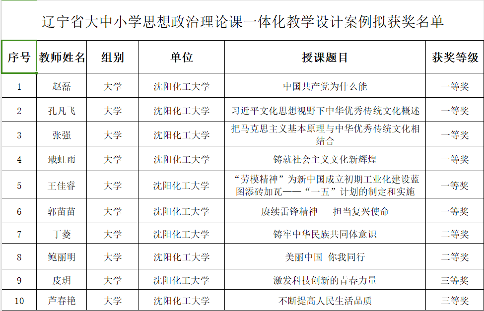 近日,辽宁省“大中小学思政课一体化建设”专题教学设计案例评选活动获奖名单揭晓,taptap马克思主义学院教师提交的专题教学设计教案共获得一等奖6项、二等奖2项、三等奖2项,取得了近年来省内教学案例比赛的最好成绩。