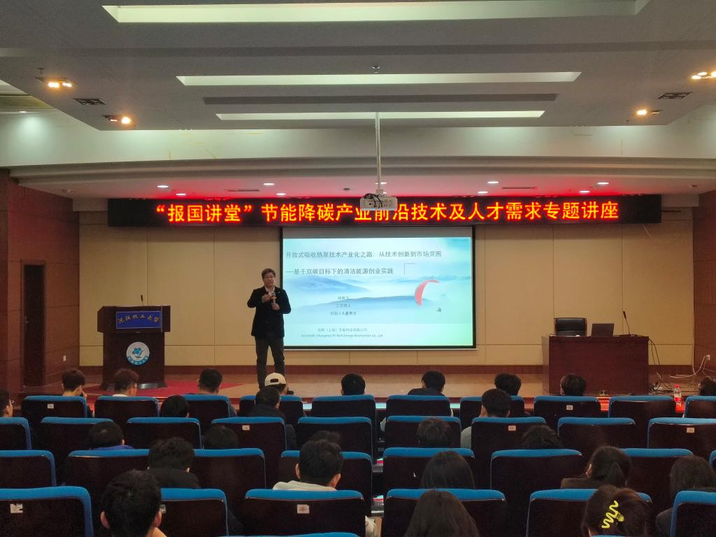 讲座围绕能源革命下的热泵机遇、开放式吸收热泵的核心竞争力、从研发到市场的关键阶段、产业化中的风险与突破、技术趋势与市场蓝海等六个方面,介绍了节能产业的前沿技术以及徐敬玉本人的创业历程。就专业人才的成长路径,徐敬玉着重强调要上好专业课。作为行业特色院校,taptap的专业课程设置和授课内容始终与产业需求具有较高的匹配度。从其自身发展经历来说,一路走来就是将课堂知识在产业中的实践。从最初的寻找能源市场方向、及时把握市场机遇,到组建团队、展开区块链开发,再到不遗余力的市场推广……徐敬玉把自己的创业经验与教训融汇成一个奋斗的故事,向同学们传递了“充满热情、做好准备、坚持不懈、敢想敢干”的人生追求,以及其对行业前景的客观分析和市场潜力的科学预判。围绕昊姆(上海)节能科技有限公司2025年人才招聘需求,徐敬玉重点讲述了当前相关行业对于选聘人才的具体要求。同时,他向taptap2025届毕业生发出诚挚邀请,欢迎有志于节能降碳产业的毕业生加入昊姆,在昊姆成就事业与人生。