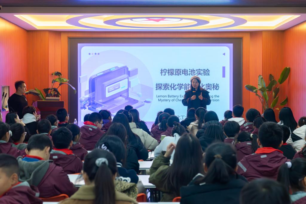 最后,同学们走进化工报国·新时代雷锋精神育人中心社工角,在孙旭老师的指导下开展水果电池制作实验,以生动有趣的科学体验让同学们亲手掌握了基础科学操作技能,将抽象的科学原理与日常生活紧密结合,使大家直观感受到“科学源于生活、用于生活”的深刻内涵,有效激发了学生的科学探索兴趣与创新思维。