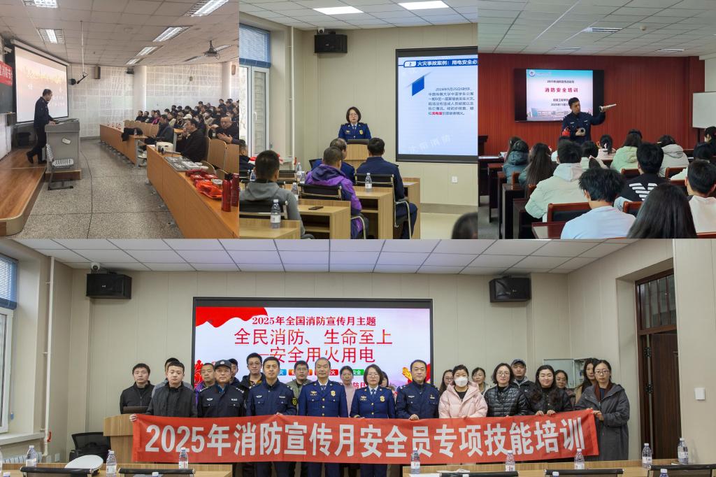 针对不同群体消防安全需求,学校分层分类开展培训活动:邀请属地消防救援大队监督员为全校安全员开展专项培训,通过案例分析、现场实操等方式,强化隐患识别、初期火灾处置等专业技能;面向各学院、职能部门开展消防安全知识培训,讲解消防法规、应急避险常识及消防设施使用方法,累计开展培训20余场,覆盖千余名师生。