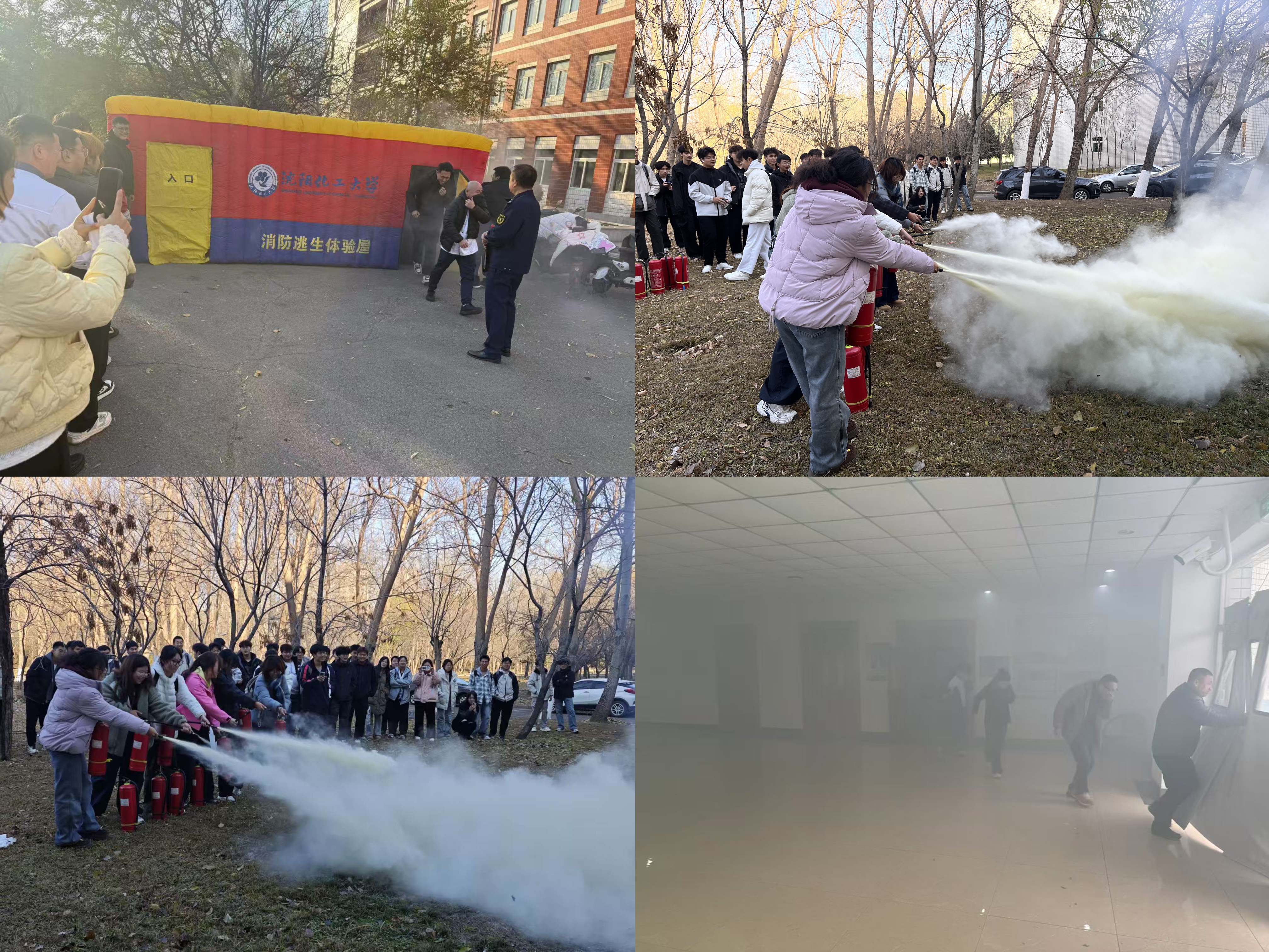 11月中旬,学校在学生宿舍区、教学楼、实验楼等场所组织开展多场应急演练。疏散演练中,师生在工作人员引导下,沿安全通道快速有序撤离至指定集合点,全程规范高效;灭火演练现场,授课人员详细演示灭火器“提、拔、握、压”操作要领,师生代表亲身参与灭火实操,切实提升应急处置能力。