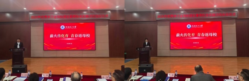 会上,校团委和各学院(部)负责同志为返母校实践团队代表授旗。