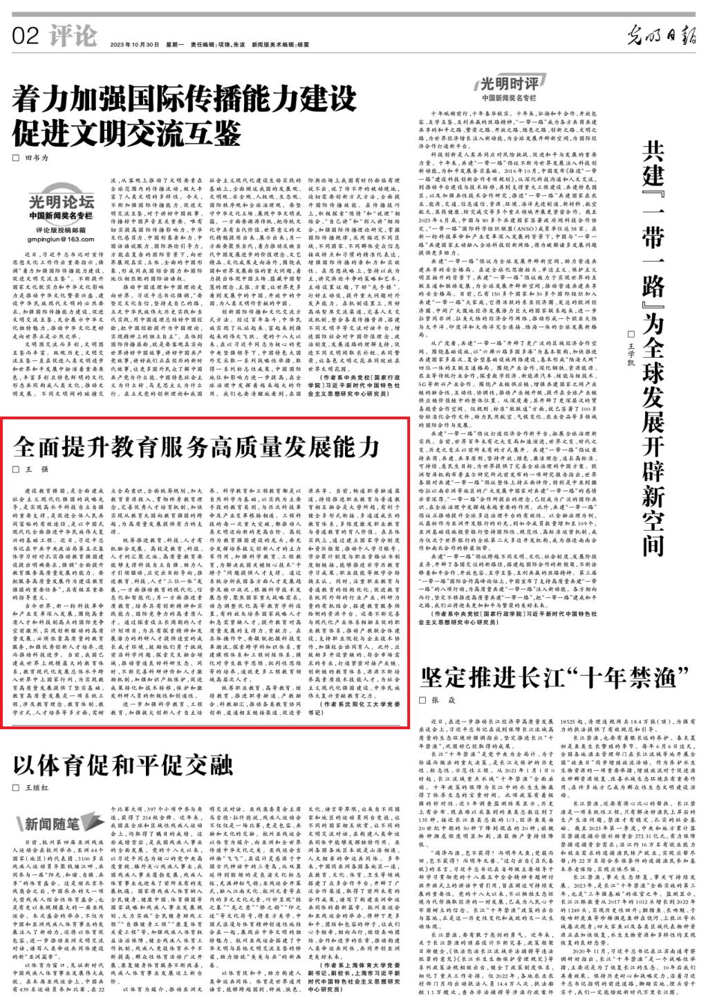 10月30日,《光明日报》“光明论坛”专栏刊发taptap党委书记王强撰写的题为《全面提升教育服务高质量发展能力》署名文章。