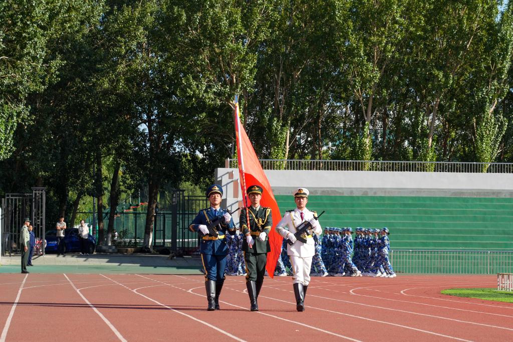 开学典礼在“牢记殷殷嘱托 强国复兴有我”开学第一课主题升旗仪式中正式拉开帷幕。党委副书记汪滢主持开学典礼。