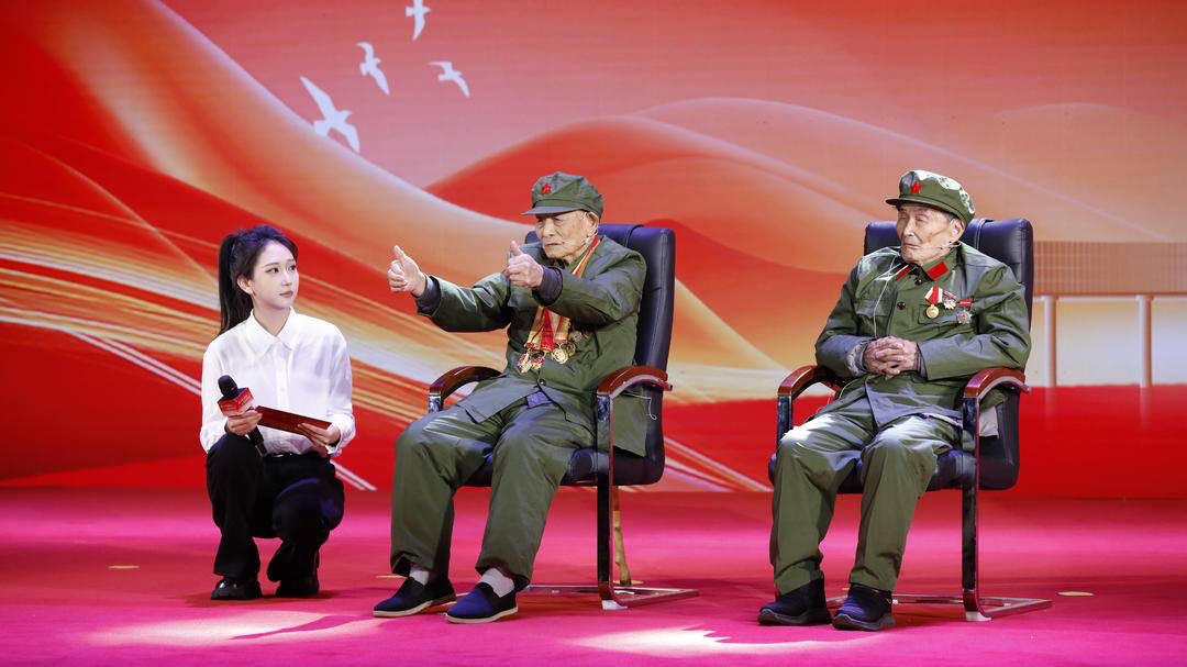100岁的抗战老兵刘思与94岁的何三,向当代大学生分享他们的抗战故事。