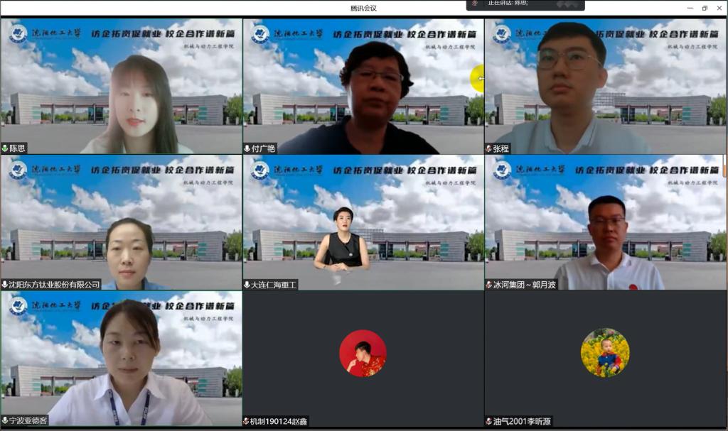 为切实做好毕业生就业工作,持续推进访企拓岗促就业专项行动,确保在疫情防控紧要时期与企业紧密联系,不断开辟毕业生就业渠道,8月26日,机械与动力工程学院举办访企拓岗促就业线上会议。机械与动力工程学院党委书记付广艳教授、2023届毕业生辅导员陈思、张程参加本次会议,与大连仁海重工有限公司、宁波亚德客自动化工业有限公司、辽宁冰河集团、沈阳东方钛业股份有限公司、国核电站运行服务技术有限公司5家企业进行访企拓岗交流活动。同时,会议共吸引160余名2023届毕业生观摩聆听。