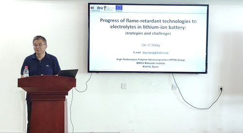 王德义教授首先回顾了与taptap多年来的合作历程,并希望能够以现有的联合研发平台为基础,为中国和西班牙的科技与文化交流做出新的贡献。之后,王德义教授主要介绍了目前火安全材料对工业领域的重要作用,并且详细分析了近年来火安全材料在新能源等领域的主要进展,以及其团队在单体电池用火安全材料领域所取得的最新研究成果。提问环节,王德义教授与青年教师和研究生进行了深入探讨,对新能源电池阻燃技术、材料学与其他学科的交叉融合等研究方向都提出了具有针对性和前瞻性的观点、建议。王德义教授的报告内容丰富,紧扣学科前沿,深入浅出,富有创新性,为拓展广大师生的知识体系,培养学生的国际化视野奠定了良好的基础。