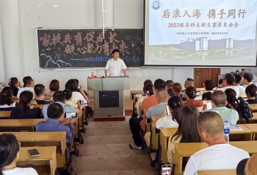 为进一步加强家校沟通,更好地把学校教育与家庭教育有机结合起来,引导家长科学教育子女,形成家庭、学校、社会三位一体的立体教育网络,凝聚教育合力,办好人民满意的大学,化学工程学院于9月7日中午12:00在碧帆楼102教室举办了“后海入浪 携手同行”2023级本科生家长见面会。学院党委书记战君、院长王康军、党委副书记余海军、副院长张志刚和伞晓广、新生辅导员和200余位家长出席本次会议。会议由党委副书记余海军主持。