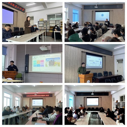 教学工作活动月期间,先后邀请国家级一流课程负责人赵焕新老师、第二十七届辽宁省教育教学信息化交流活动一等奖获得者许速老师、《小组工作》课程任课教师曹迪老师、《建筑与景观设计》课程任课教师吴比老师,就如何建设一门金课、如何设计一节微课和如何开展项目式教学等问题进行经验交流。赵焕新老师结合金课建设经验,从课程目标适应度、教学投入保障度、评价数据有效度、课程目标达成度和学生学习满意度等五个方面,详细阐述了建课过程中遇到的问题,给出了相应的解决措施与办法;许速老师以《图形适老化设计》为例,完整介绍了微课设计、实施过程、总结评价环节及课程制作环节;曹迪、吴比老师以各自主讲的课程为例,实施项目式教学,达到人才培养的理论与实践统一。