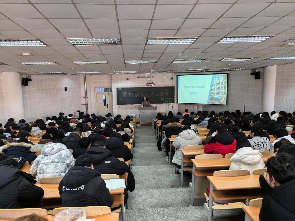 为切实做好寒假留校研究生的安全教育工作,提高留校学生的安全防范意识,规范假期留校学生住宿管理、教学培养、实习实践、实验安全等相关工作,1月15日上午化学工程学院在瑞师楼226召开寒假留校研究生安全教育大会。学院党委副书记孙晓静、副院长周明东、研究生辅导员以及300余名留校硕博研究生参加会议,会议由辅导员穆鹏丞主持。