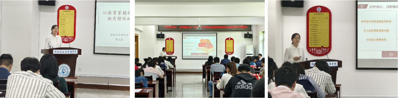 开展优秀教师“专题报告”活动。有机化学教研室崔天放教授作“以教育家精神为引领,做有情怀的教师”专题报告。她提出,教师要大力弘扬教育家精神,做到以德立人,因材施教,建立科学的课程教学体系,结合学生专业,拓展课程内容,做到个性化、前沿化、多元化。提倡教师发扬乐教爱生,甘于奉献的精神,全面关注学生的个性发展。激励教师以满腔热情,为培养新时代优秀人才贡献力量。选树先进典型,发挥榜样作用,本次活动的成功开展,有效激励了全体教师积极担当作为,为学院教学工作的质量提升和持续发展提供了有力支撑。