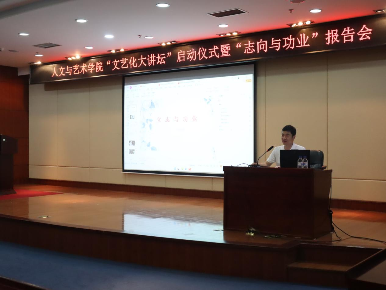 启动仪式后,何明洲老师以“志向与功业”为题,围绕志向的定义,立足本岗(专业)确立志向,并且适时调整并确立新志向;付诸行动,实现志向,脚踏实地地付出与所立志向相对应的坚忍不拔的努力和奋斗;实现阶段性小志向是实现远大志向的基础;阐述个人、他人和整体志向的关系。志向不仅仅限于个人层面的意愿和追求,必须与他人形成合力,必须和整体目标相契合,才可能实现;正确志向,永不偏向五个方面进行讲解。他建议个人应选择社会需要的、最能发挥个人特长的职业作为志向,并为实现志向而努力奋斗;勉励人文与艺术学院广大师生有志于开拓新领域、创造新业绩。