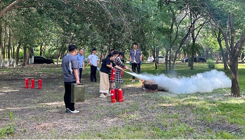 会后,在户外开展了室外灭火演练。保卫处工作人员对灭火器使用进行了专业、详细、耐心地指导。通过灭火演练,同学们实际体验了灭火器的使用方法,增强了防火防灾意识,提高了应急能力。