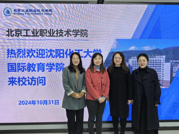 10月31日,国际教育学院副院长王亮、教学秘书程茵一行到北京工业职业技术学院(以下简称北工院)进行调研,与北工院国际交流合作处孟晴处长、王瀛老师就中文工坊项目建设进行了座谈交流。