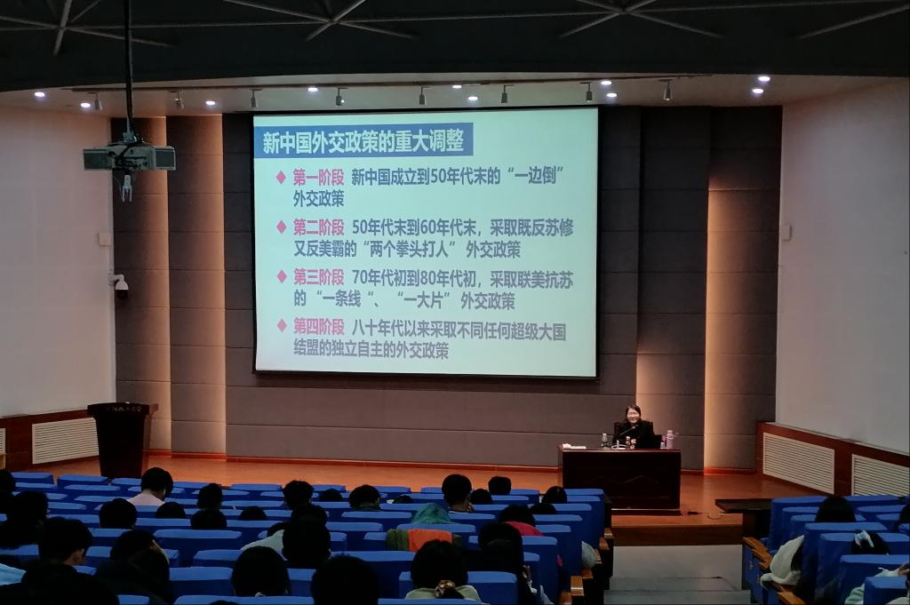 10月28日,由马克思主义学院、辽宁省“构建协同育人机制讲好‘大思政课’贾冰名师工作室”主办的深入学习贯彻党的二十届三中全会精神“形势与政策”课名师系列讲座第四讲在碧帆楼304报告厅顺利举办。本次讲座邀请辽宁大学马克思主义学院邢邑开副教授主讲,主题为“推动构建新时代的大国关系格局:中国特色大国外交之中美篇”。化工等专业的近400名师生聆听了讲座。