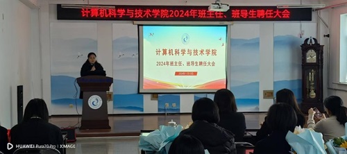 为落实立德树人根本任务,发挥专业教师在学生成长中的指导作用,以及学生骨干在学生学习生活中的传帮带作用,计算机科学与技术学院于11月13日在致本楼E座517会议室召开2024级本科生班主任、班导生聘任大会。学院党委书记王菲、党委副书记张丽、副院长张波、各教研室主任、2024级新生班主任、全体辅导员及2024级新生班导生和本科生学生代表参加,大会由2024级本科生辅导员张鸽主持。