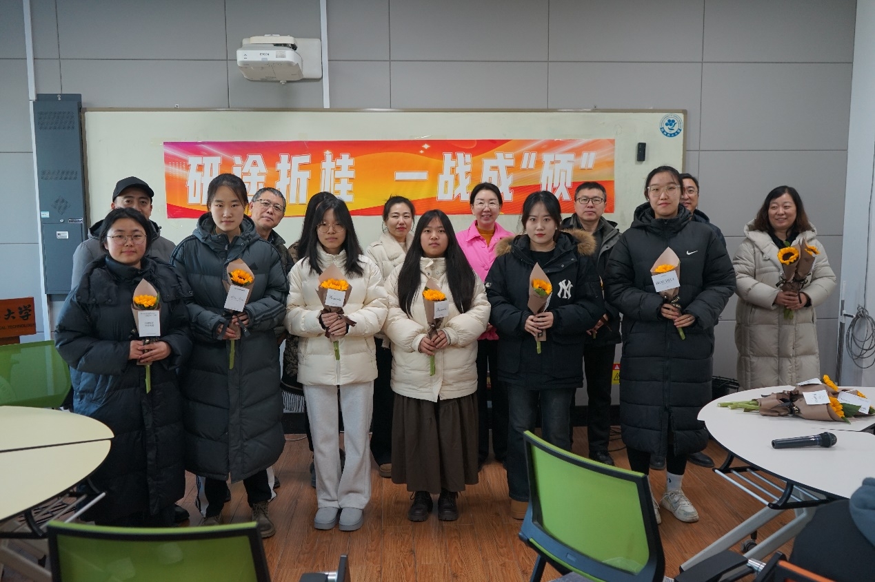 院长李漫红代表学院对同学们努力学习、勇于追梦的精神给予高度肯定,提醒大家在最后的冲刺阶段,要合理分配时间,保持身体健康,劳逸结合,放松身心,从容应对考试,严守考场纪律。会上,全体老师满含笑意,将一束束寓意美好的向日葵花赠与考生。这些鲜花承载着满满的祝福与期望,盼学生们于考场上妙笔生花,一举夺魁。