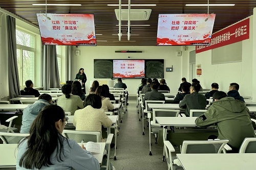 为贯彻落实学校党委2025年全面从严治党工作会议要求,深化2025年党风廉政建设宣传教育月活动主题“廉政教育,构建廉洁生态”,提升教辅党总支全体党员的思想认识,增强党性修养,切实改进工作作风,4月9日,教辅党总支在通明楼211教室组织召开全体党员大会,会议共有四项议程,由教辅党总支书记林艳新主持。