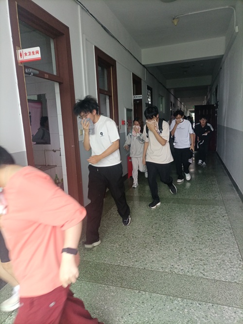演练前,学院党委书记李丙文结合校园实际,从用火用电规范到隐患识别,以典型案例系统讲解消防安全知识,夯实理论基础。随着模拟烟雾弥漫,警报声骤响,师生迅速用湿毛巾捂口鼻、弯腰低姿,沿预定路线有序撤离,数分钟内全员安全集结,现场随即完成人数清点。