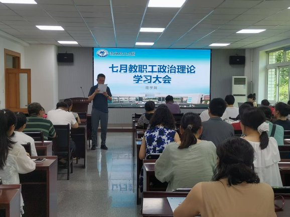分析化学教研室副教授张英领学《关于高校教师师德失范行为处理的指导意见》,培育和践行社会主义核心价值观——习近平在全国高校思想政治工作会议上的讲话。普通物理教研室讲师林爽领学《中国智慧教育白皮书》——共同开启教育数字化发展新征程。全体教职工要进一步提高政治站位,暑假期间认真做好理论学习、调查研究等工作,持续推动主题教育走深走实,确保学习教育各项工作任务落地落实。