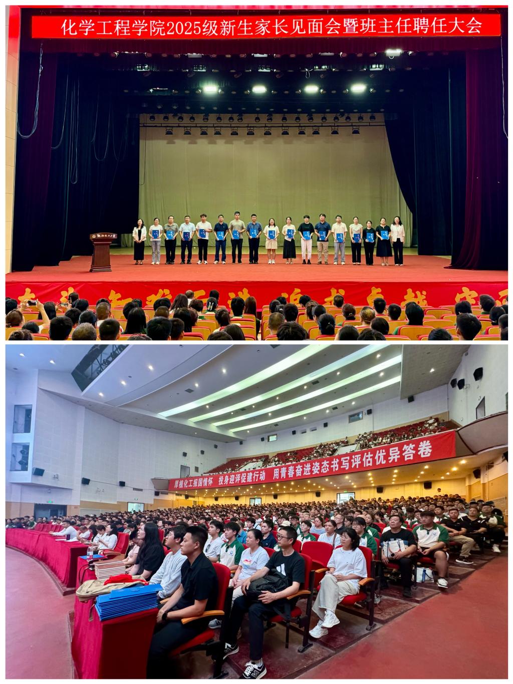为深入贯彻落实立德树人根本任务,持续深化“三全育人”工作落地见效,助力2025级新生快速适应大学生活、明确成长方向,9月4日,化学工程学院在大学生活动中心召开2025级新生家长会暨班主任聘任大会。学院领导班子成员、各教研室主任、新生辅导员、2025级本科生班主任,以及全体2025级本、硕、博新生和家长共同参会。会议由2025级本科生辅导员李明旭主持。