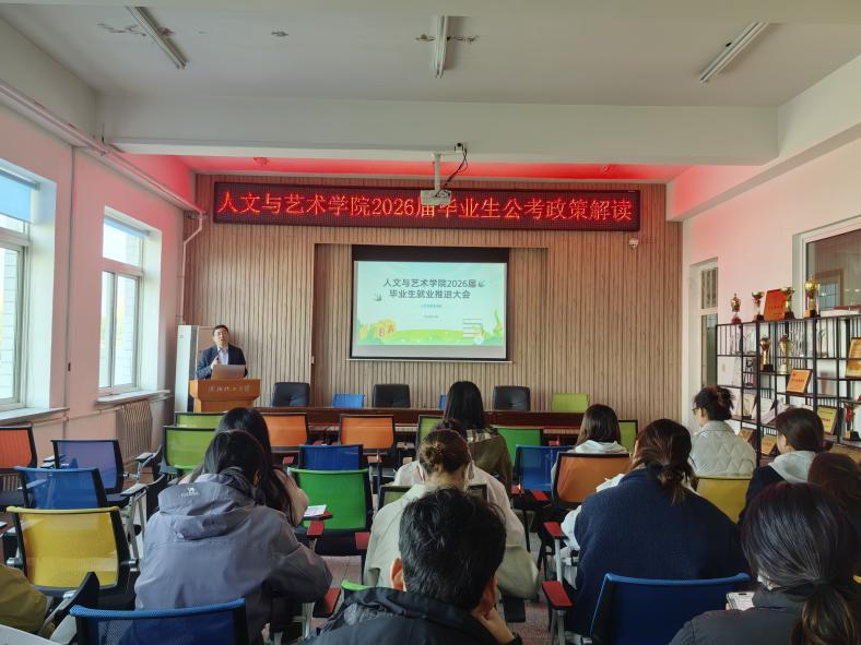 为帮助2026届毕业生第一时间精准把握国家公务员考试最新动态,科学规划备考路径。10月16日,人文与艺术学院在敬仲楼418教室启动系列就业指导之“公考政策解读”活动。学院党委副书记于丰刚、毕业生辅导员孙重阳、刘明玥出席会议,2026届本科生、研究生毕业生参会。