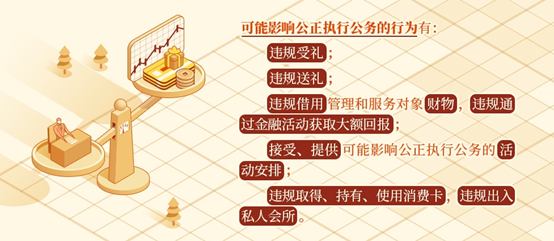 这里的“可能影响公正执行公务”,是指与党员、干部职权相关联,与其公正履职相冲突,可能导致不公正执行公务。